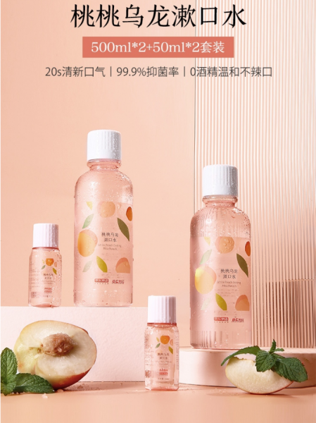 京东京造×京东秒杀 桃桃乌龙漱口水500ml*2+50ml*