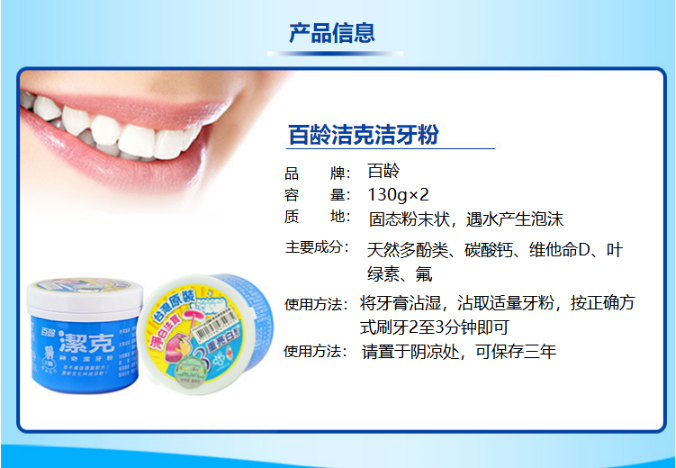 百龄 洁克神奇洁牙粉130g×2 美白 去黄 口气清新 去渍