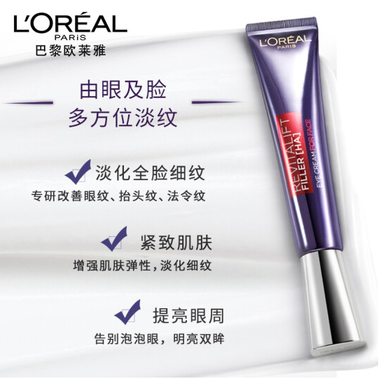 商品名称:欧莱雅紫熨斗眼霜 玻色因全脸淡纹 提拉眼周 弹润柔滑 30ml