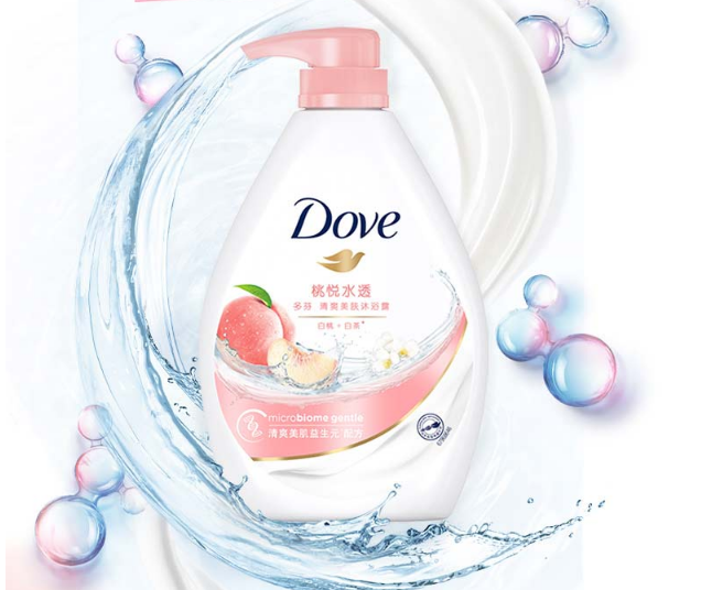 多芬沐浴露 桃悦水透沐浴乳1000g 白桃果香 0皂基 清爽易冲洗 保湿修护 (新老包装随机发货)