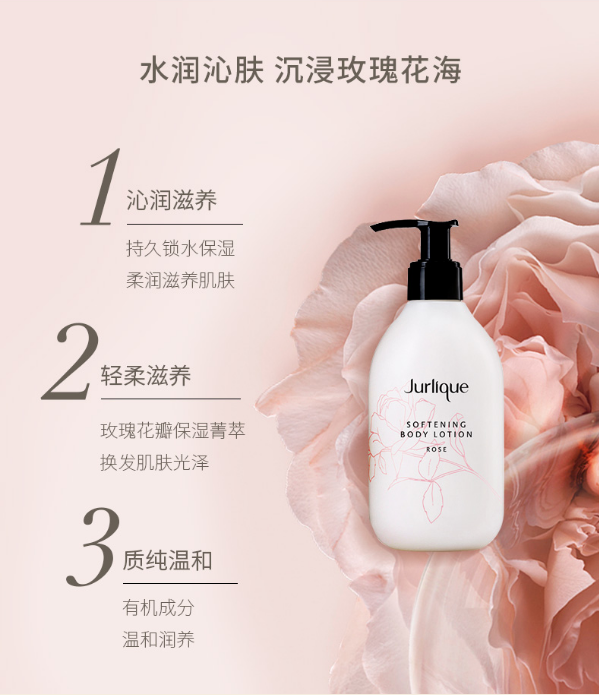 茱莉蔻(Jurlique)玫瑰身体护理星选礼盒(玫瑰柔肤沐浴露300ml+玫瑰身体乳300ml+玫瑰手霜30ml)