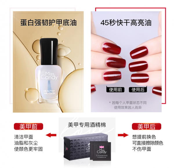 产品光泽:身的光泽度就还可以,加上快干亮甲油,就更美了