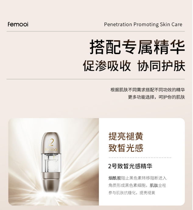 femooi 飞莫水光针仪器家用脸部纳米微针无痛导入仪 HiMESO美容仪水光仪 香槟金+送2号美白精华2盒