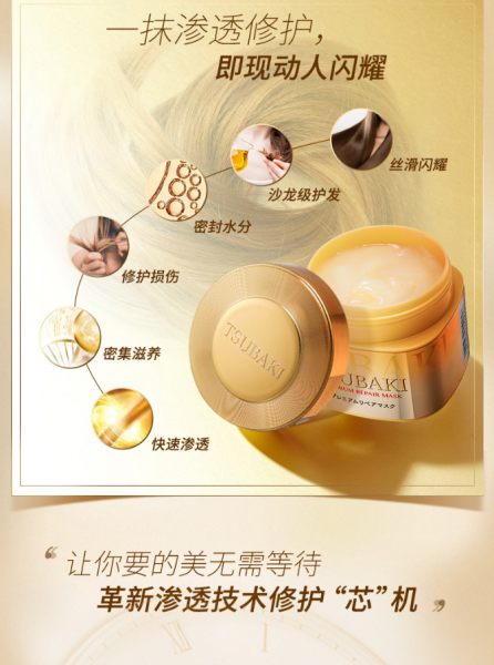 资生堂丝蓓绮(TSUBAKI)0秒臻护多效修护发膜180g(