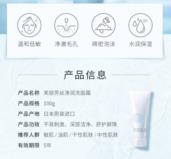 商品名称:Freeplus/芙丽芳丝洗面奶氨基酸系净润洗面女男士洁面乳100g和清洁敏感肌 单支净润洗面霜100g