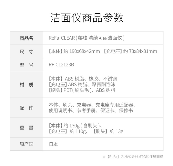 ReFa CLEAR 黎珐 洁面仪 声波电动洗脸仪 熊野笔柔软刷头 清洁毛孔 按摩美容仪 日本原装进口