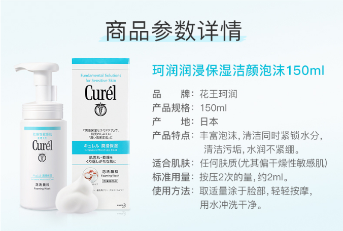日本珂润(Curel)润浸保湿洁颜泡沫 150ml(泡泡慕斯