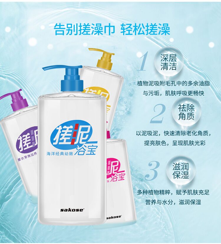 sakose海洋搓泥宝1000ml 身体去角质沐浴露男女用 搓澡泥成人沐浴盐去泥宝磨砂膏