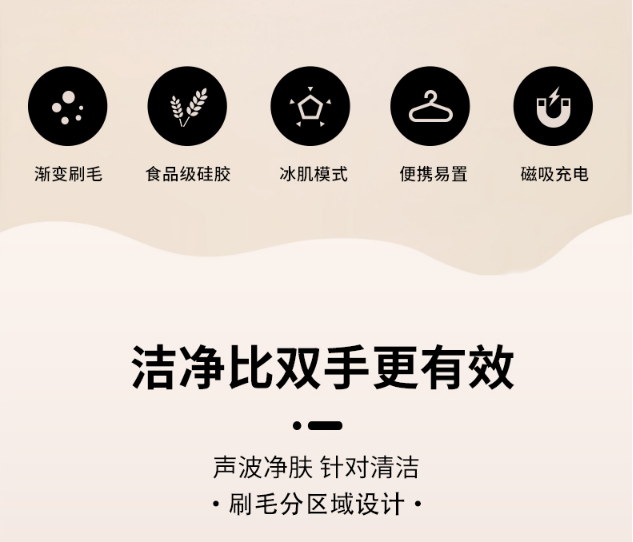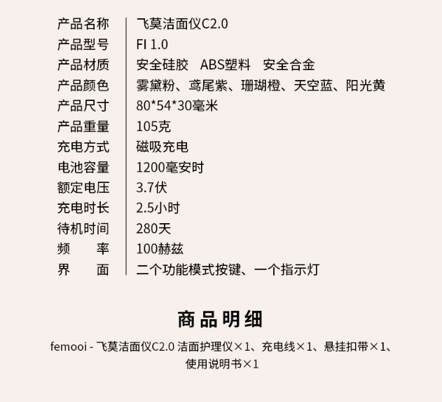 包装清单:洁面仪、洁面仪挂带*1、充电线*1