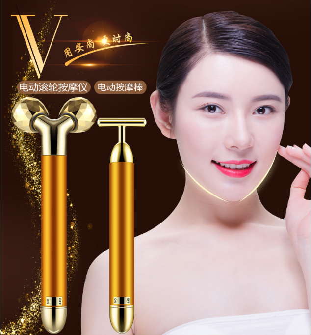 电动美容棒瘦脸神器24k色黄金电动美容棒3D瘦脸仪淋巴脸部V脸按摩器