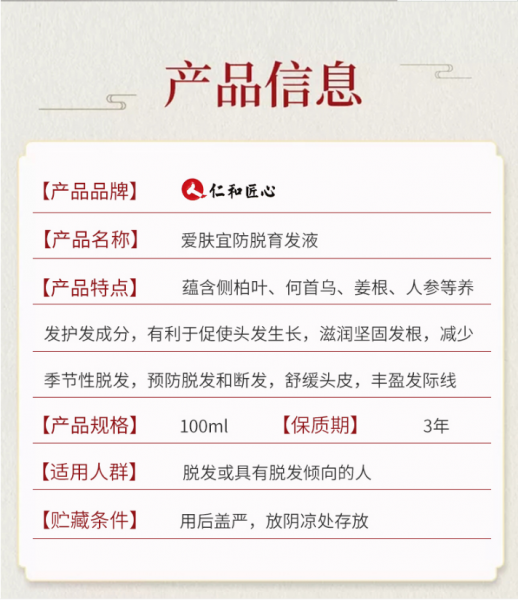 商品名称:仁和匠心 防脱发育发液 增发液密发护发固发头皮护理精华掉发秃顶脂溢性脱发际线增长生长剂青少中老年男女 100ml一瓶【此为1瓶,2.送.1请拍数量2】